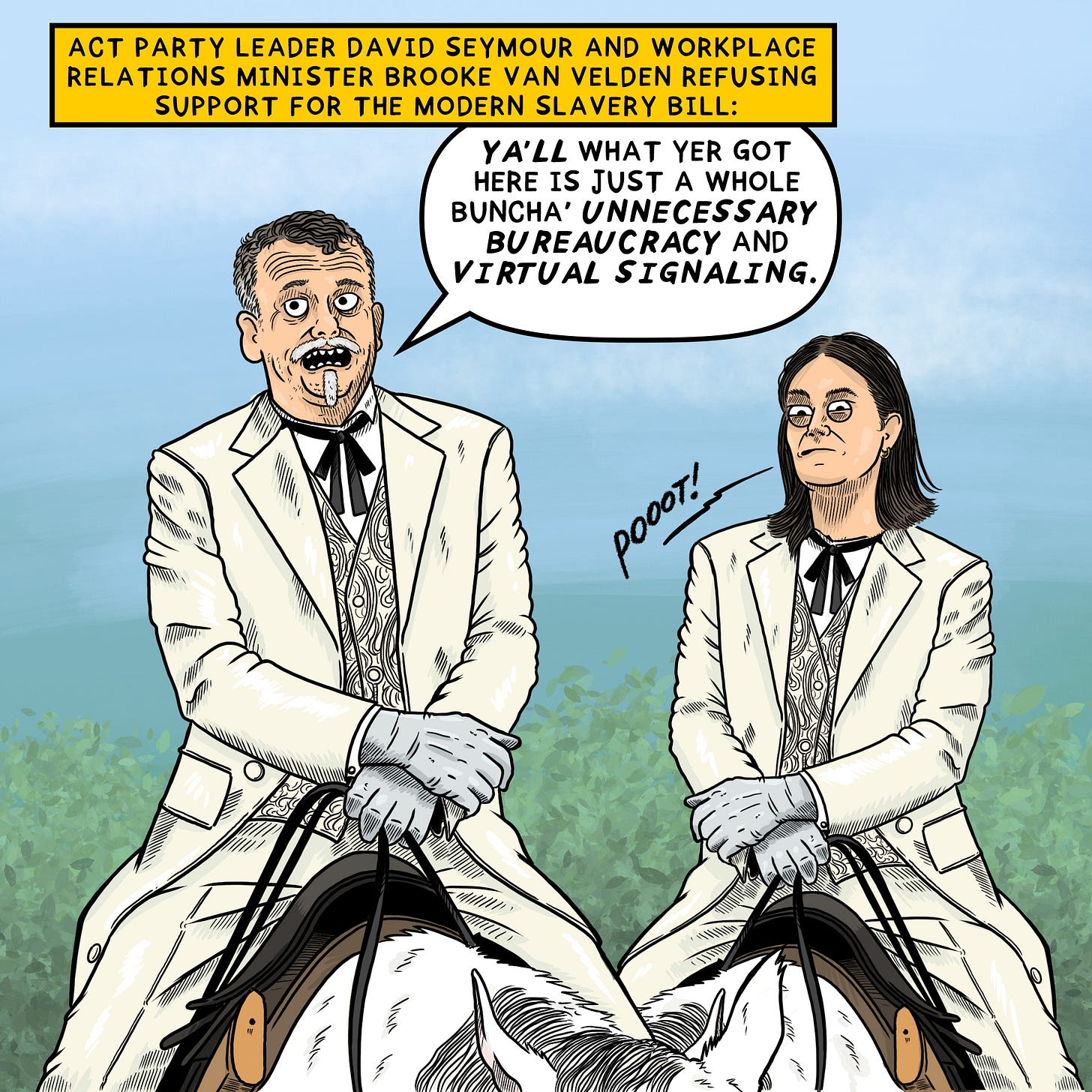 The rare move was brought about after ACT Party and its Workplace Relations Minister, Brooke van Velden, refused support the bill. Van Velden had previously disbanded a leadership group set up by Labour in 2023 to provide advice on a modern slavery law, and stated that the bill was “not a priority” for her.